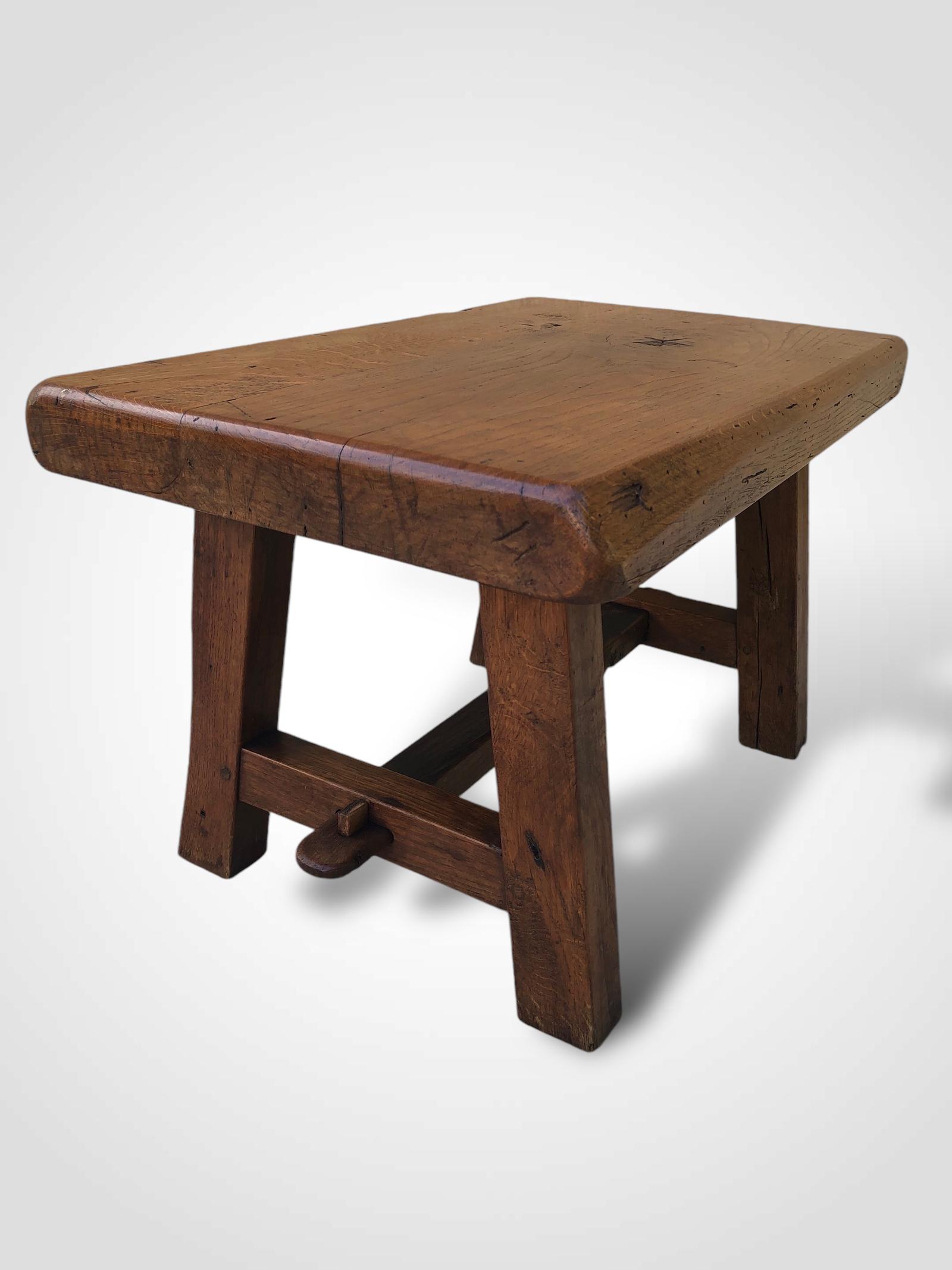 Vintage Brutalist Solid Oak Rustic Stool Small Coffee Table