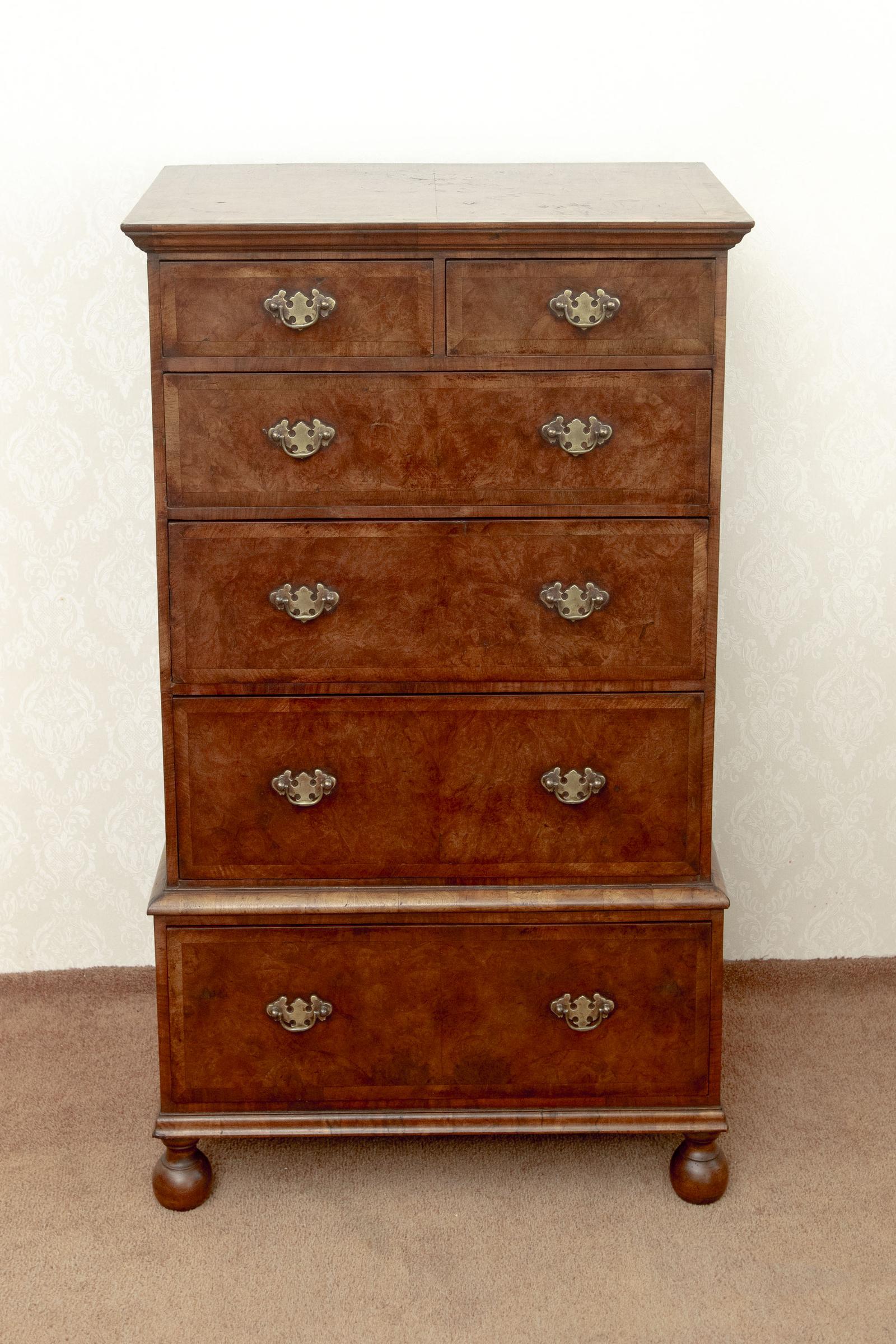 Vintage Burr Walnut Chest of Drawers of Very Small Size