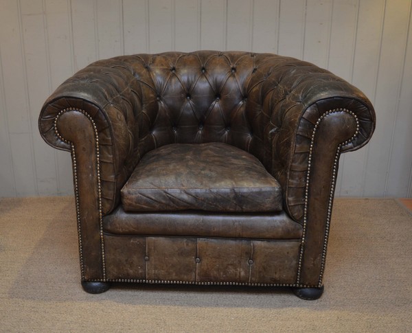Vintage Button Back Leather Club Chair, English c.1950