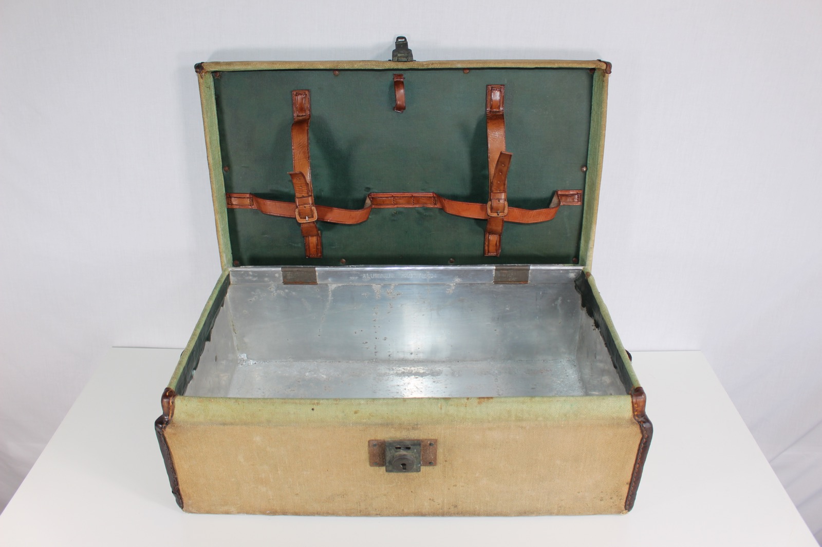 Vintage Canvas & Leather Mounted Picnic Hamper
