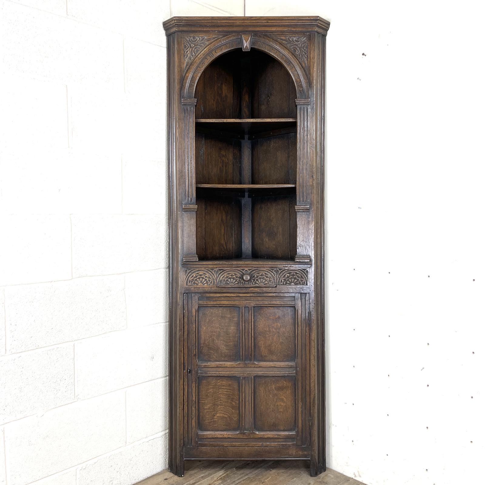 Vintage Carved Oak Corner Cupboard