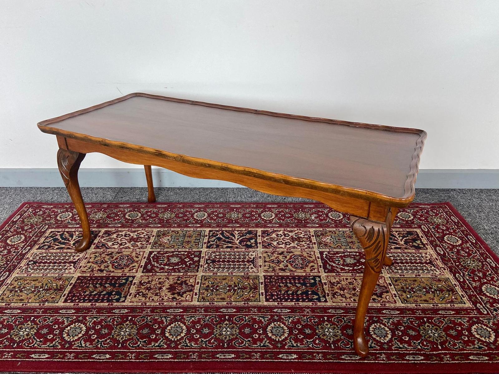 Vintage Carved Oak & Mahogany / Coffee Table - England 1950s - Queen Anne Legs
