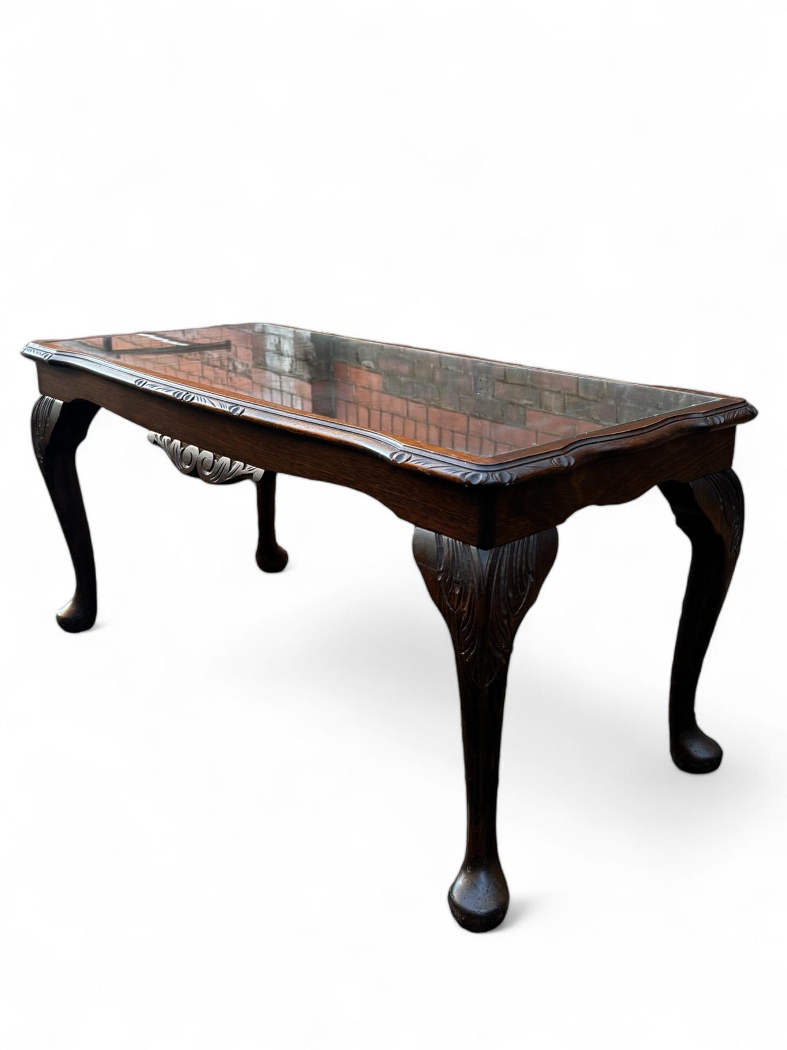 Vintage Carved Oak & Mahogany / Coffee Table / Made in England 1940s / Queen Anne Legs