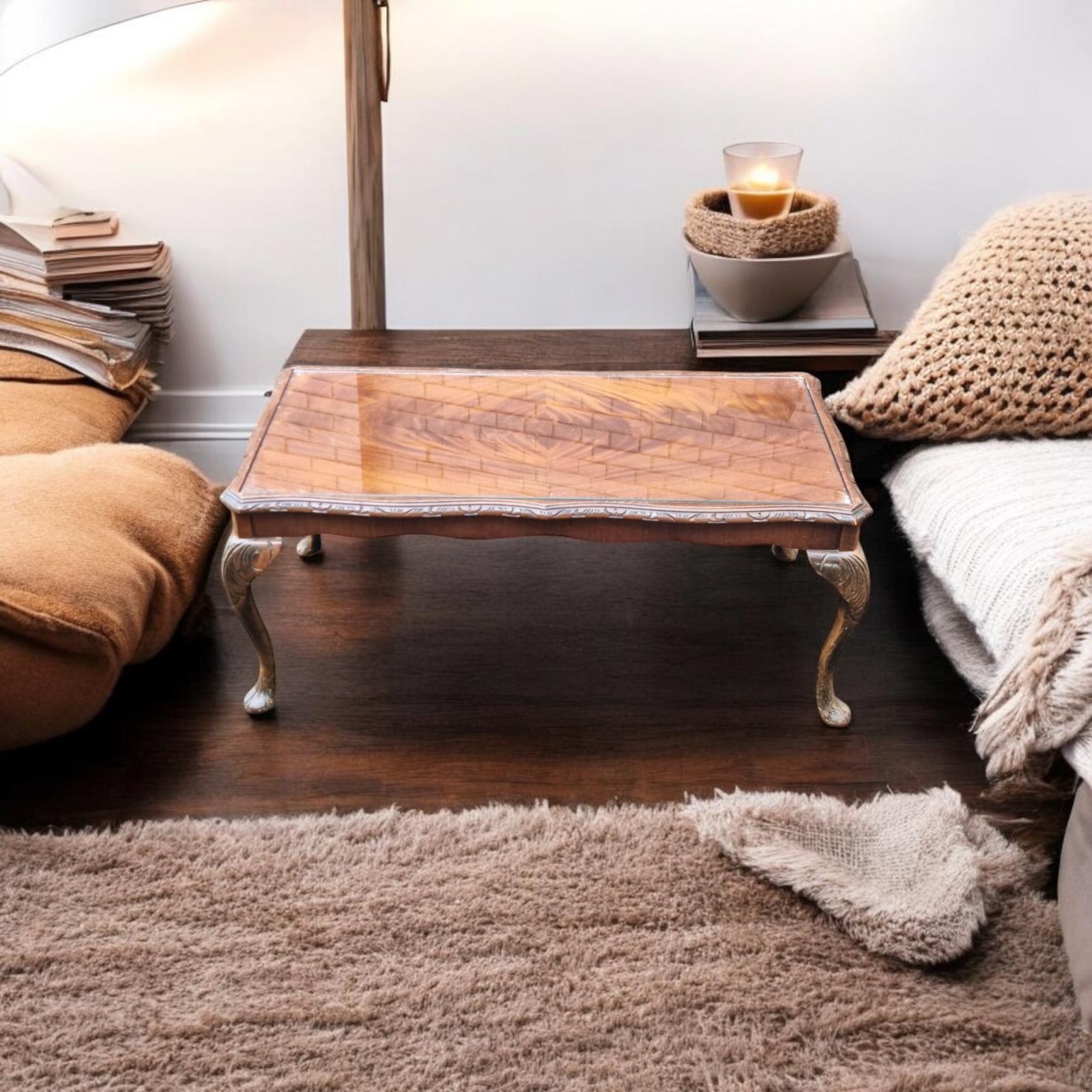 Vintage Carved Oak & Mahogany / Coffee Table / Made in England 1940s / Queen Anne Legs