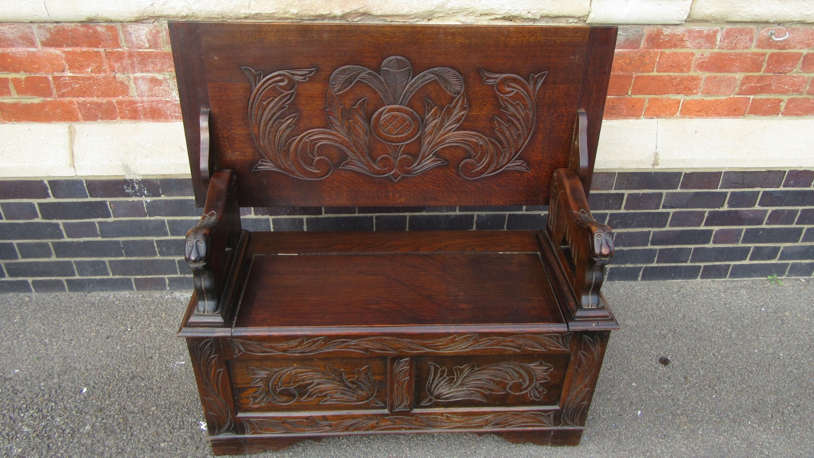 Vintage Carved Oak Monks Bench