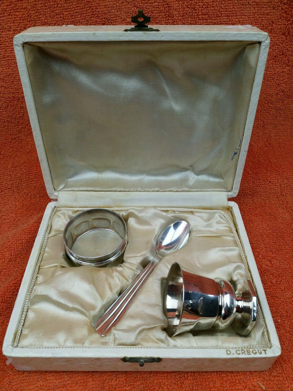 Vintage Cased French Silver Plated Christening Set, D. Cregut of Paris France