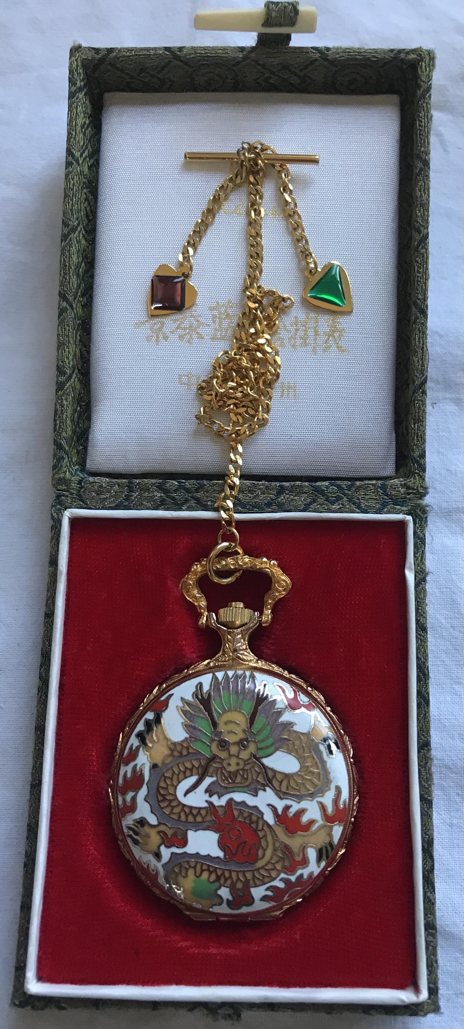 Vintage Chinese Cloisonné Skeleton Pocket Watch