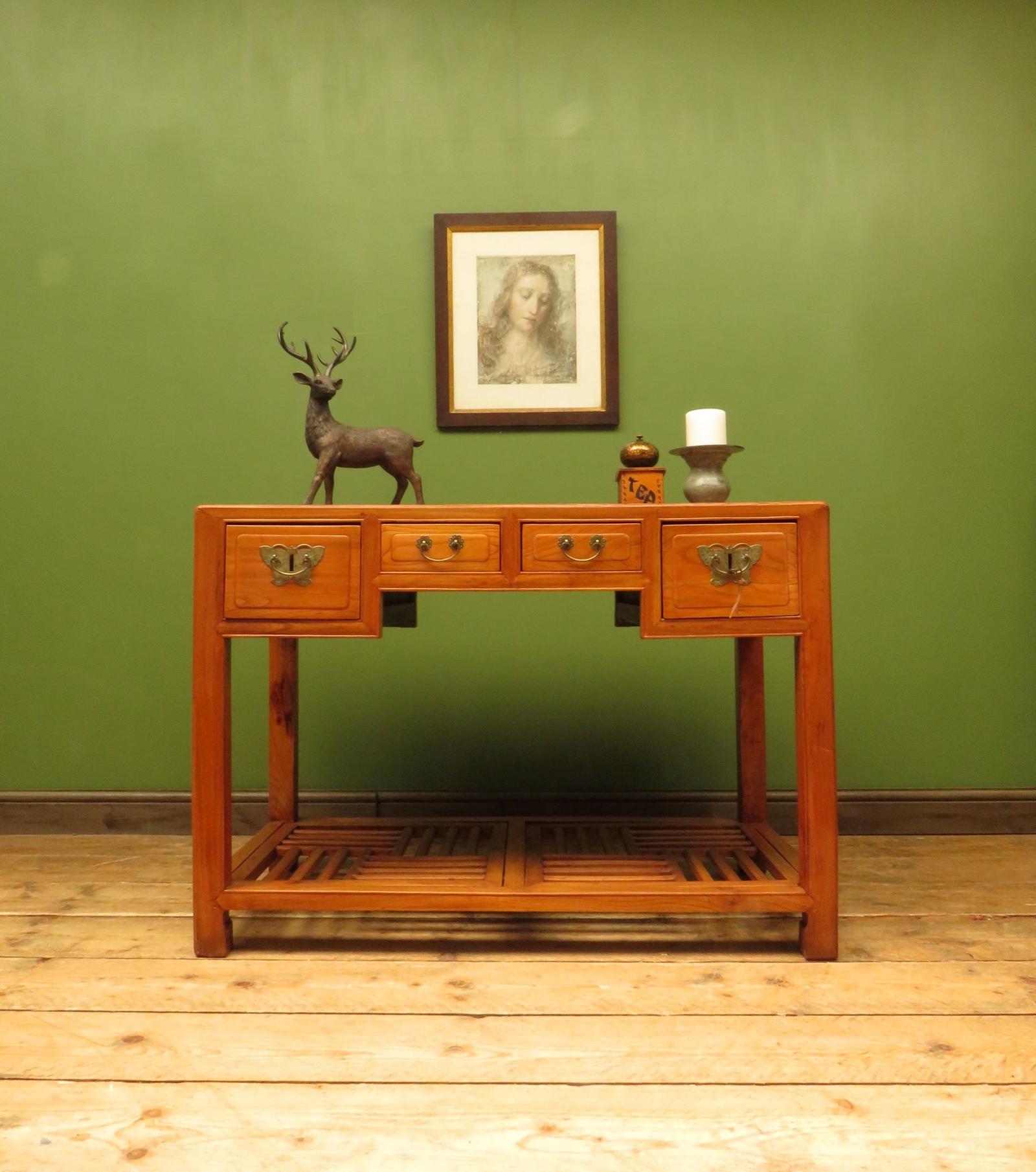 Vintage Chinese Elm Desk with Slatted Undertier