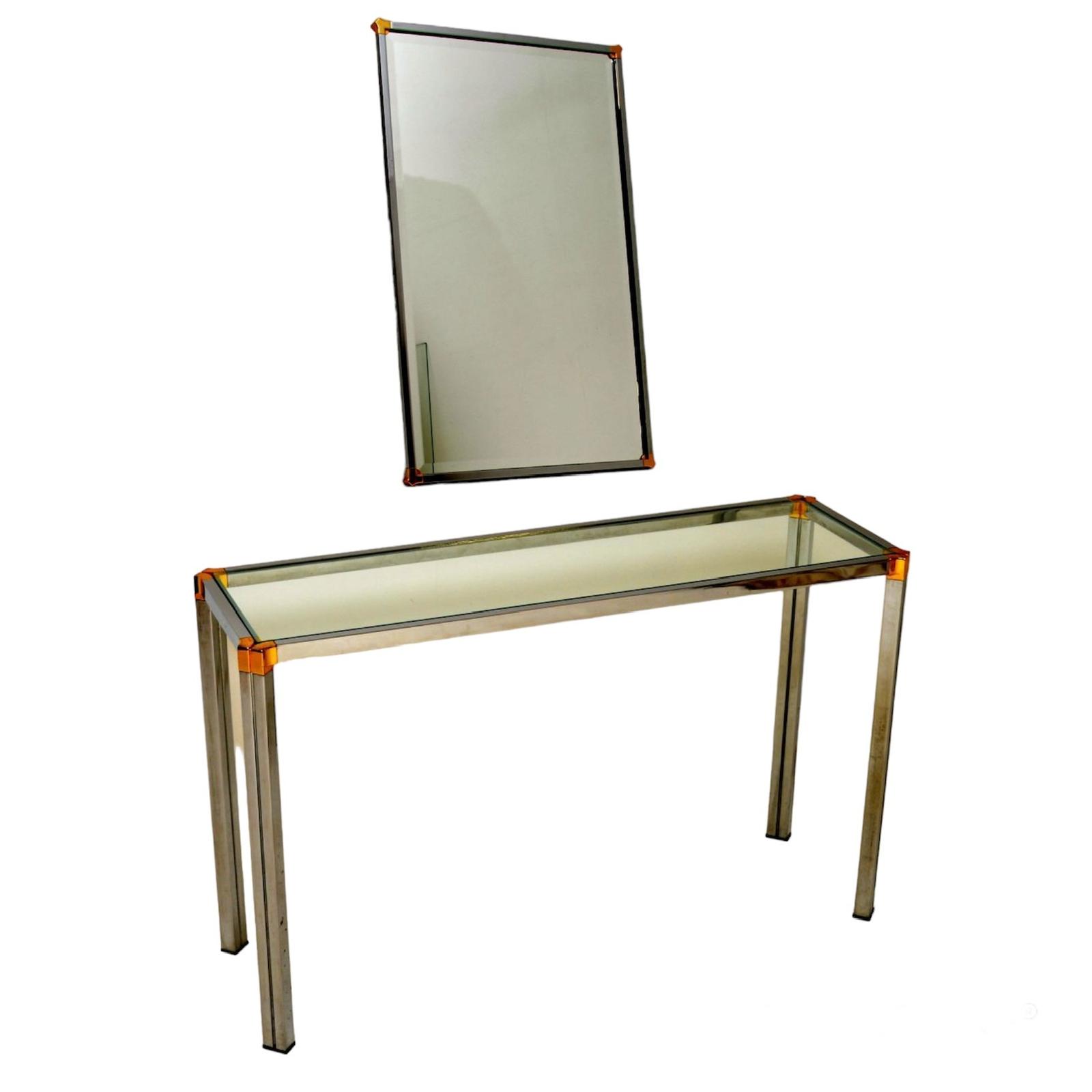 Vintage Chrome & Brass Console Table with Mirror (1 of 12)