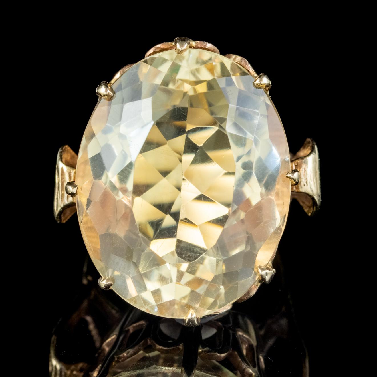 Vintage Citrine Cocktail Ring 9ct Gold Large 35ct Citrine Dated 1974