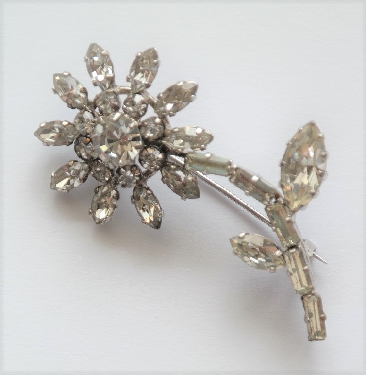 Vintage Claw Set Rhinestone Flower Brooch (1 of 1)