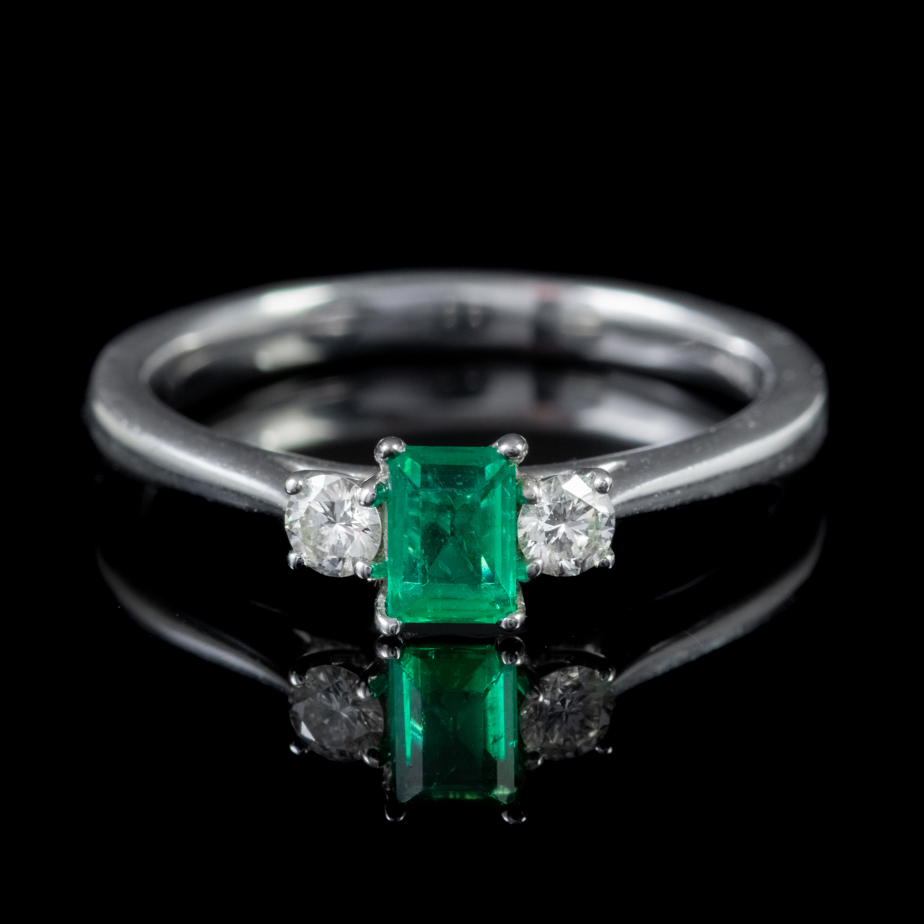 Vintage Colombian Emerald Diamond Trilogy Ring 18ct White Gold 0.50ct Emerald c.1962