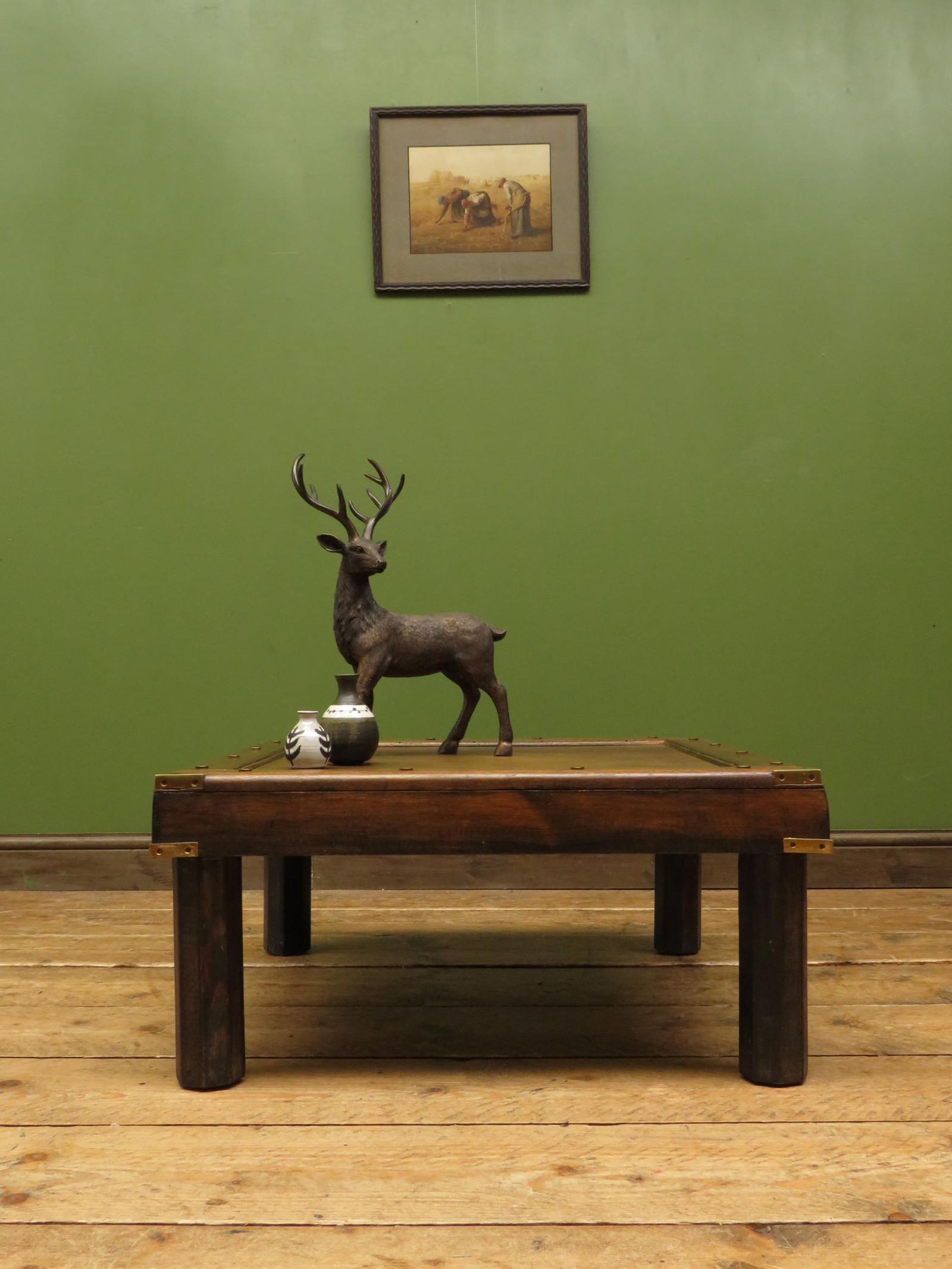 Vintage Colonial Style Low Coffee Table with Brass Details, Nautical Table