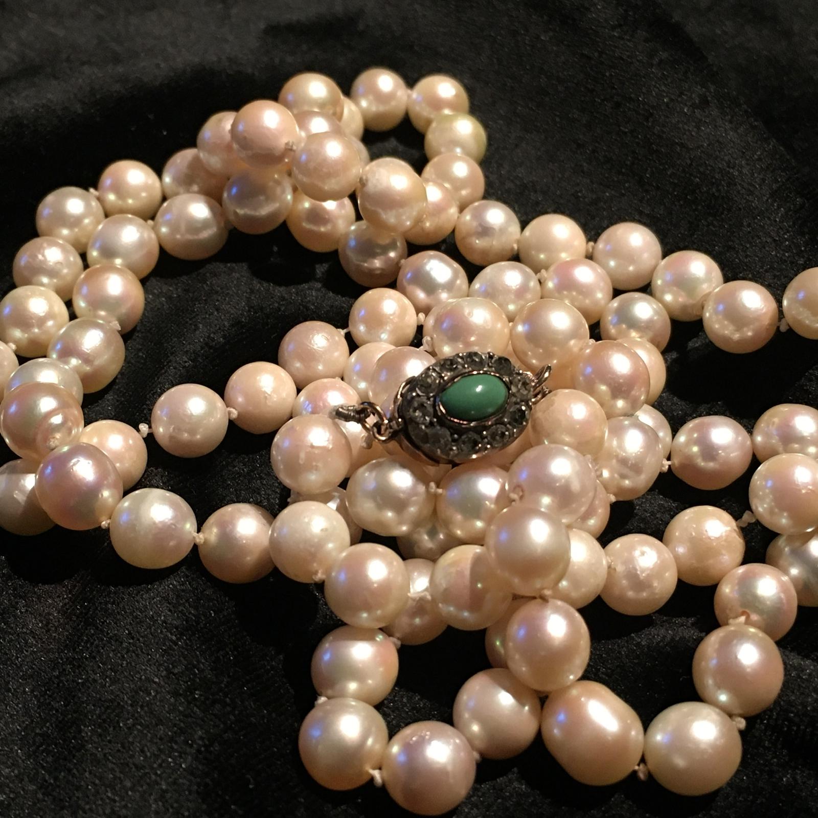 Vintage Cultured Pearls with Gold & Turquoise Clasp