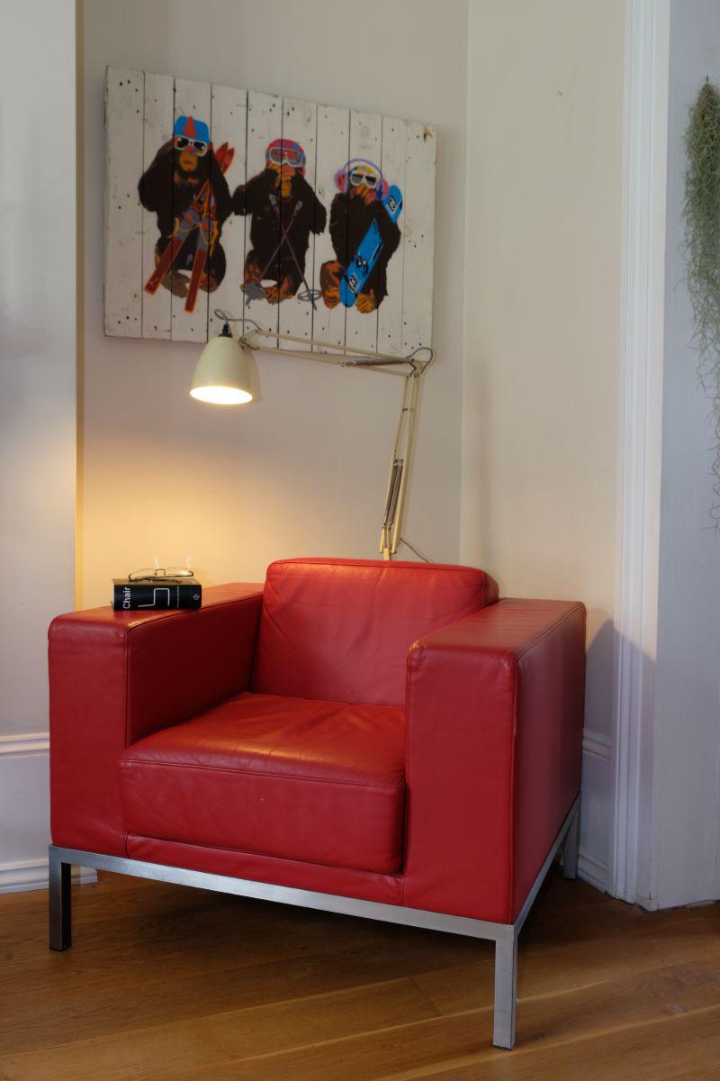 Vintage Design Box Shaped Armchair Real Red Leather Upholstery