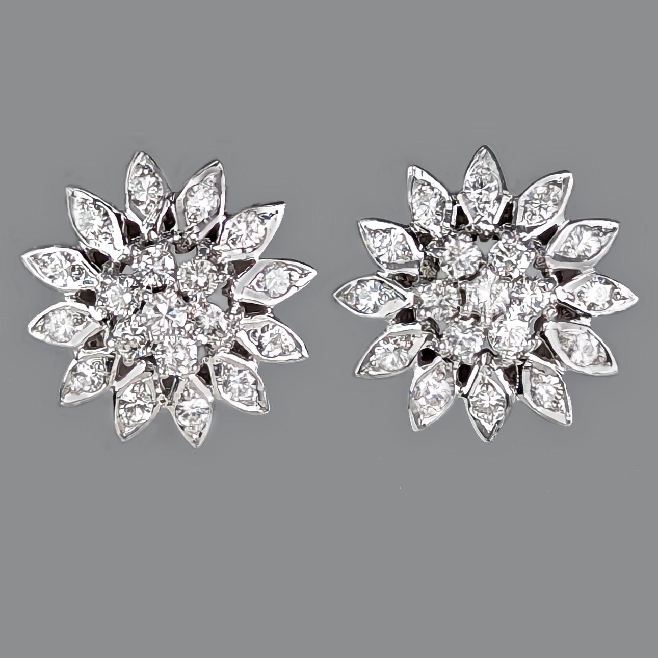 Vintage Diamond Earrings 18ct Gold Floral Cluster 1.5ct Diamond Daisy Earrings