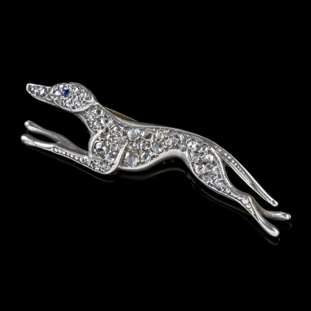 Vintage Diamond Greyhound Brooch Silver 18ct Gold Boxed