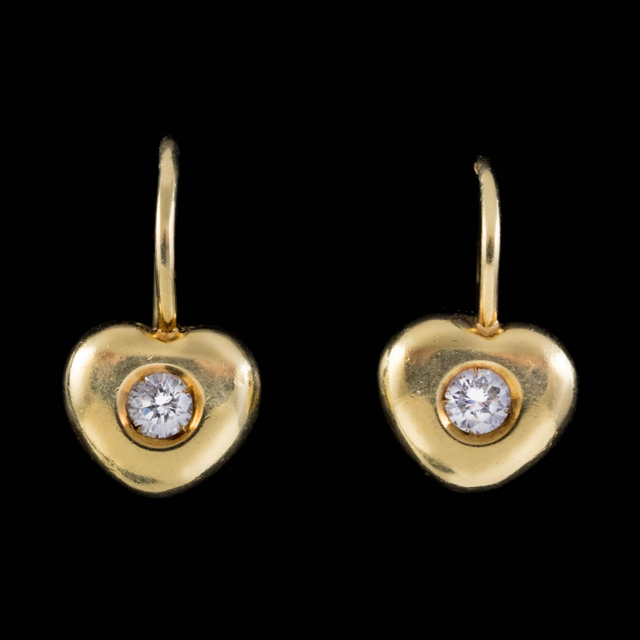 Vintage Diamond Heart Earrings 18ct Gold Lever Backs