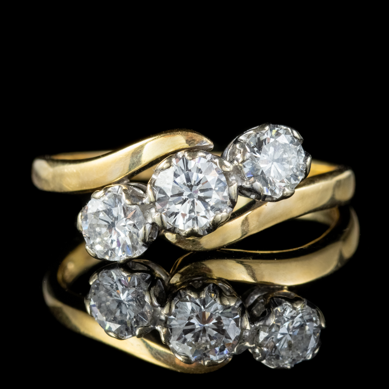 Vintage Diamond Trilogy Twist Engagement Ring 18ct Gold 1.60ct Diamonds