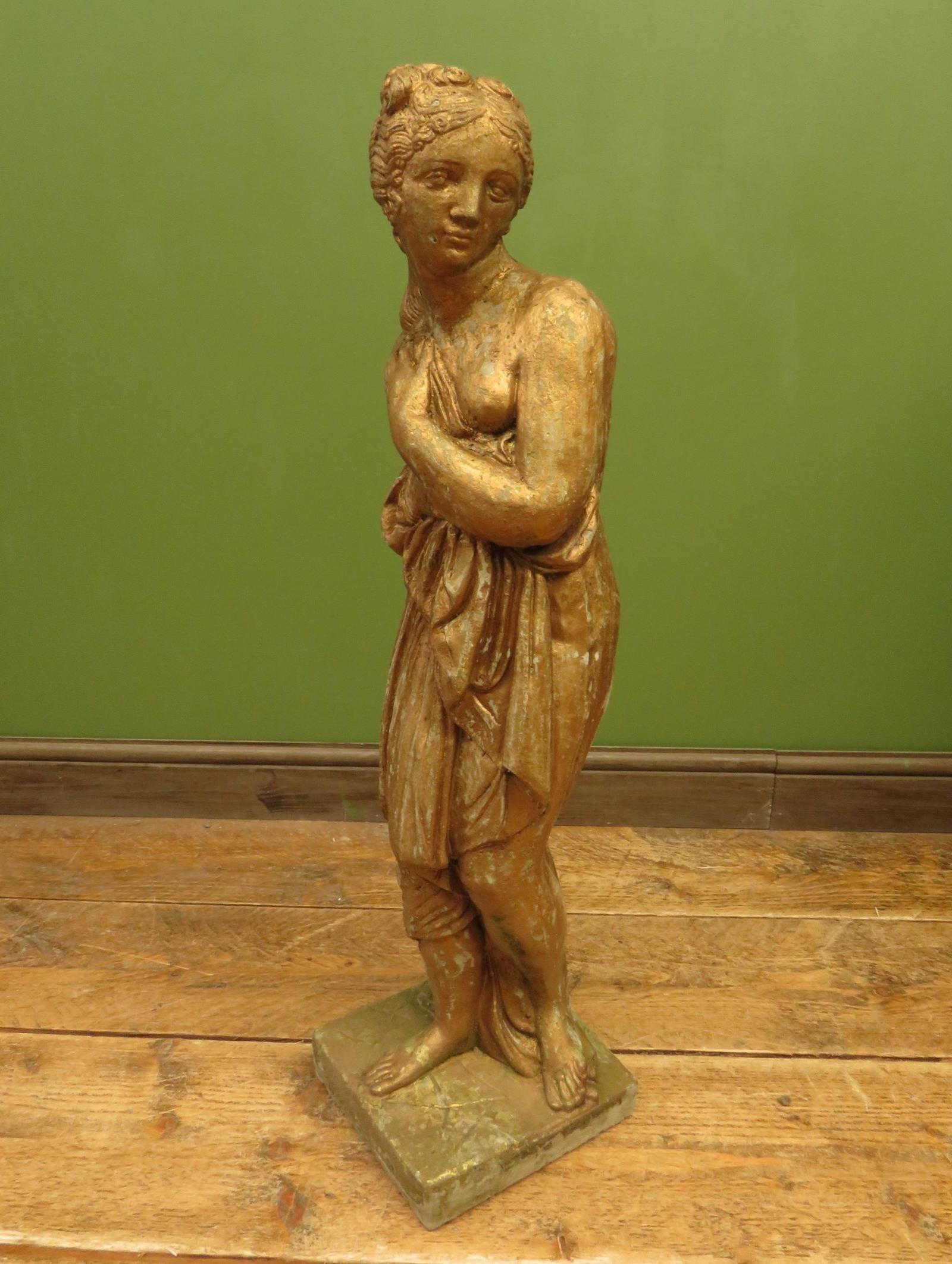 Vintage Distressed Garden Goddess Statue with Aged Gold Finish