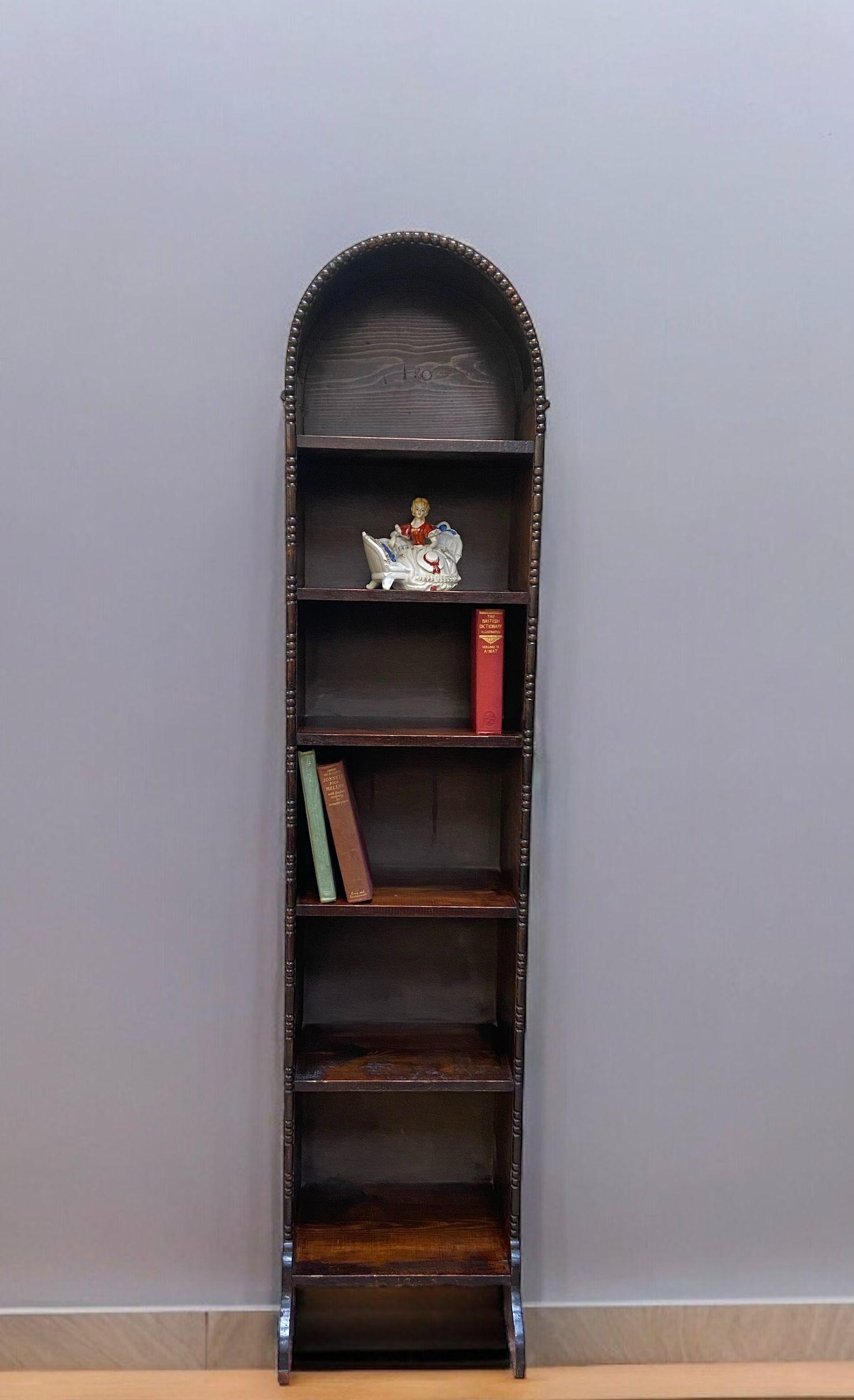 Vintage Dome Top Dark Tall Open Bookcase / Made in England c.1950