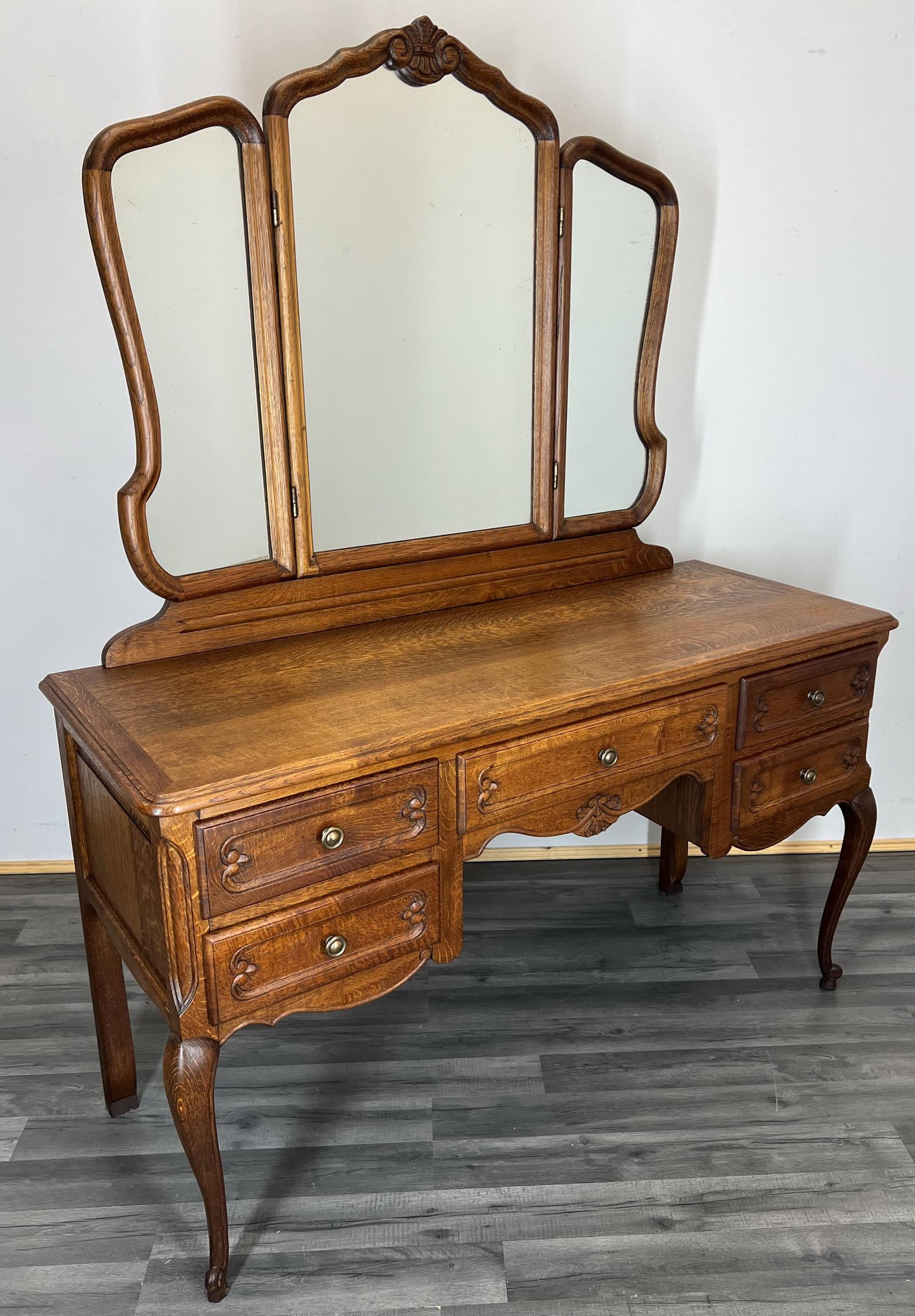 Vintage Dressing Table with Mirror French Oak Louis Vanity Table Makeup