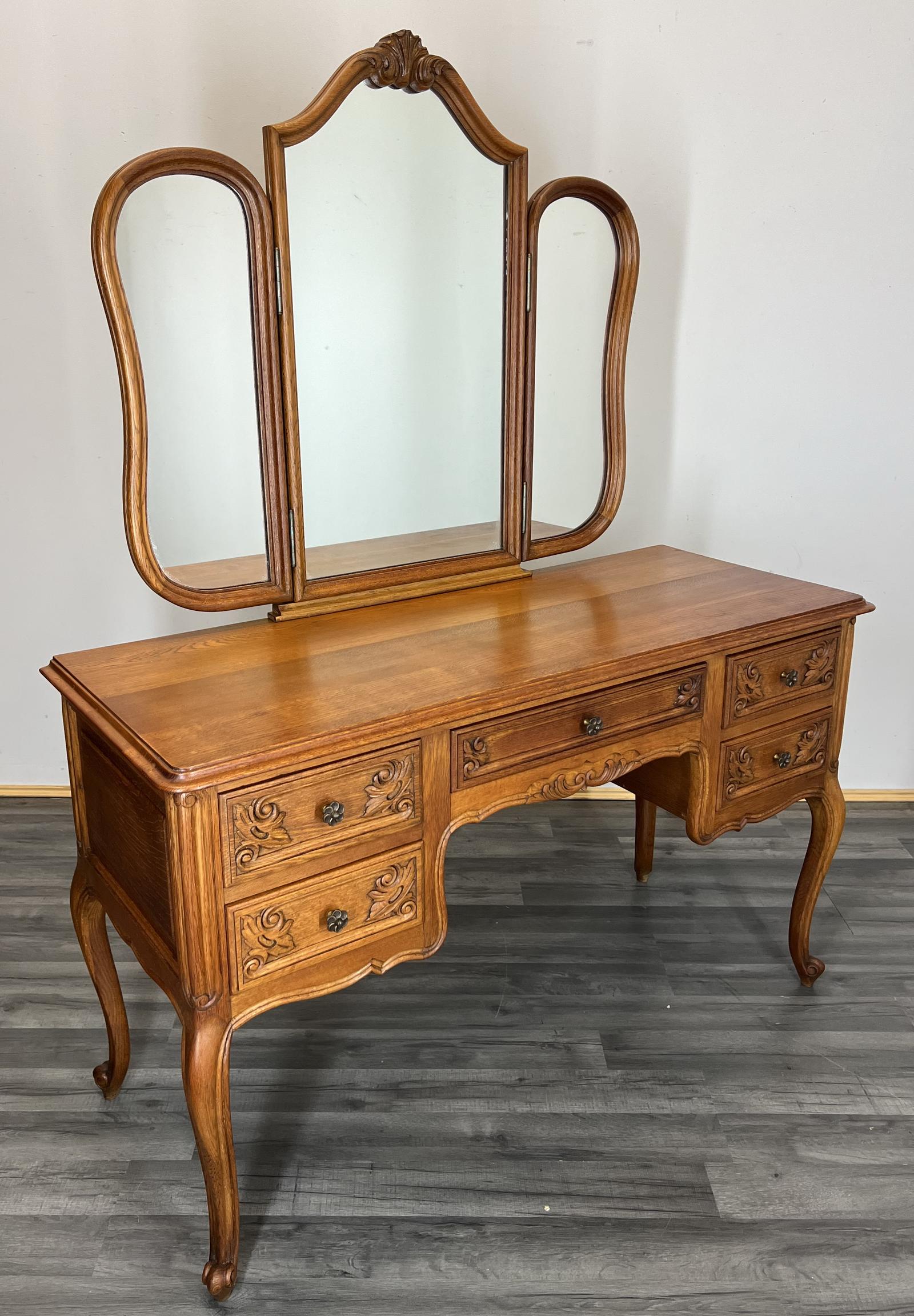 Vintage Dressing Table with Mirror French Oak Vanity Table Makeup