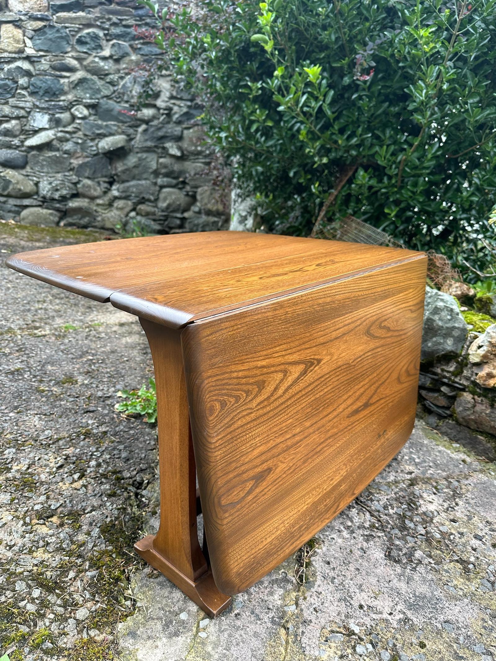 Vintage Ecrol Slimline Elm Drop Leaf Occasional Table / Golden Dawn c.1970