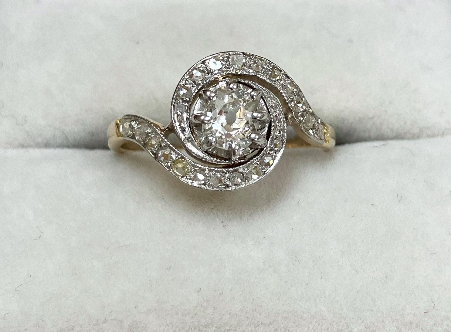 Vintage Edwardian 18ct Gold & Platinum Swirl Diamond Ring - Size N