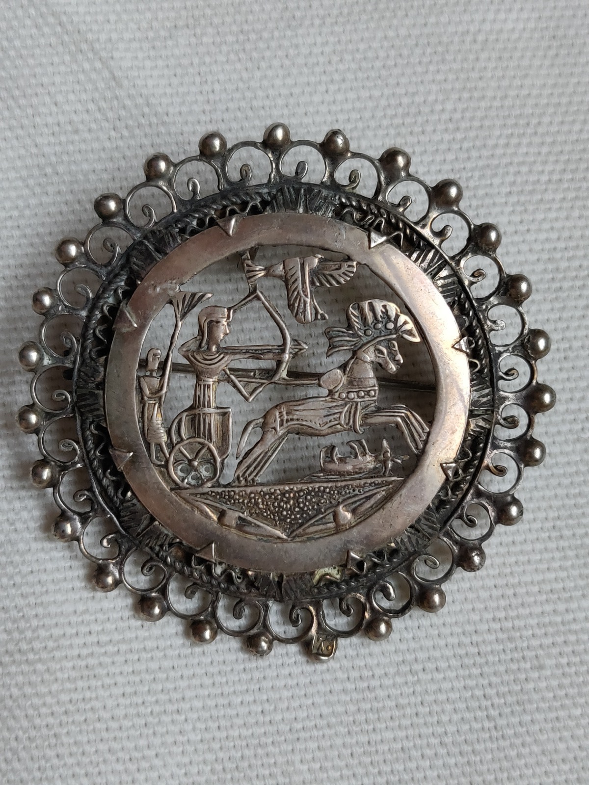 Vintage Egyptian Hallmarked Filigree Style Sterling Silver Pin Brooch Pendant