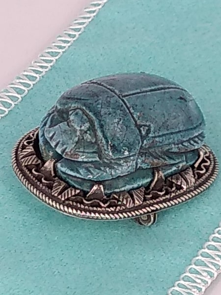 Vintage Egyptian Silver Faience Scarab Brooch