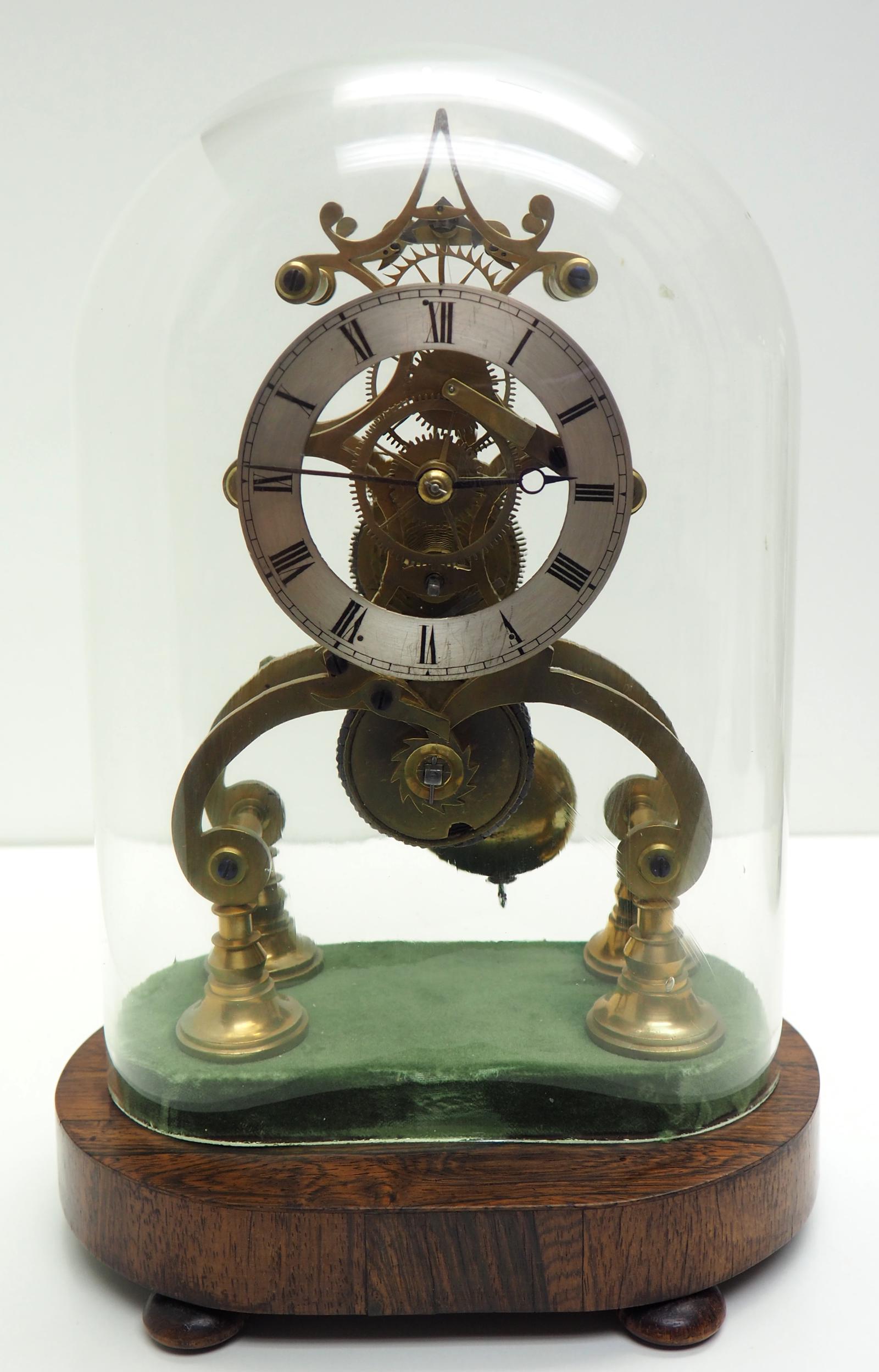 Vintage English Fusee Skeleton Clock 8-day Fusee Timepiece Mantel Clock All Under Dome 5 Spoke Wheels (1 of 17)