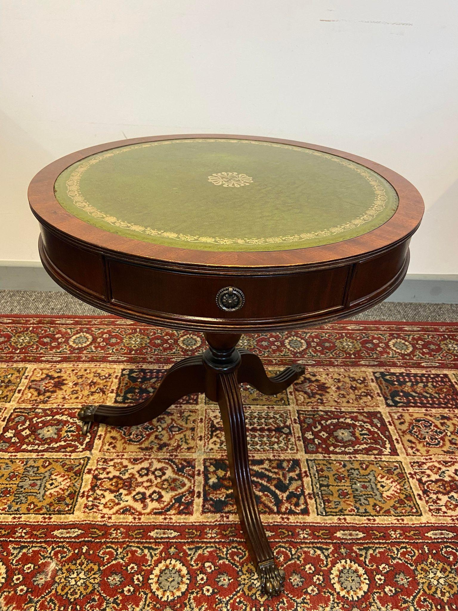 Vintage English Round Table - Green Leather Top - Design Period 1960s