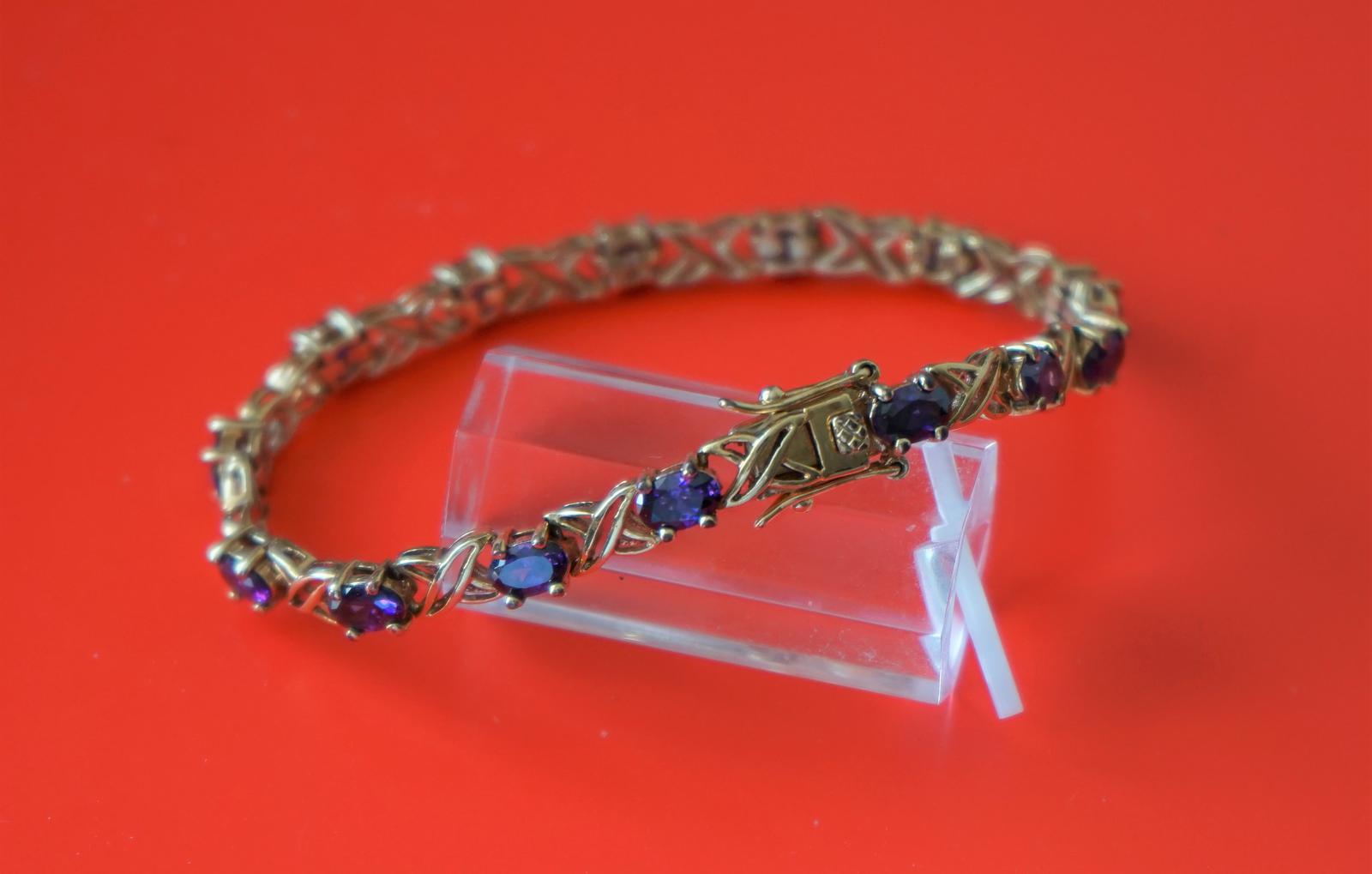 Vintage Exquisite Gold Amethyst Gem Set Link Bracelet - Boxed / Ideal Gift (1 of 11)