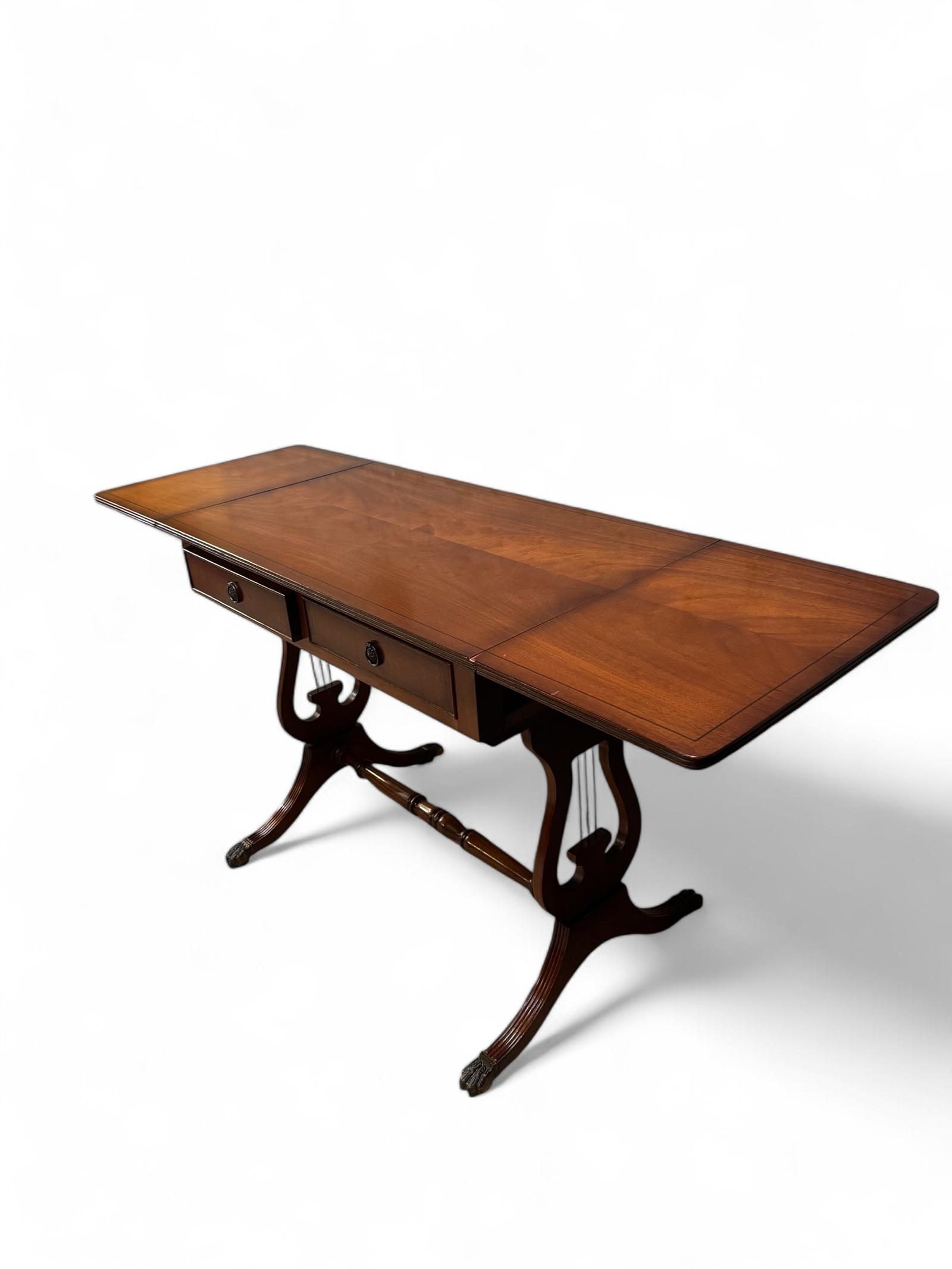 Vintage Flamed Mahogany Extendable Drop Leaf Side Table / Two Drawers c.1950