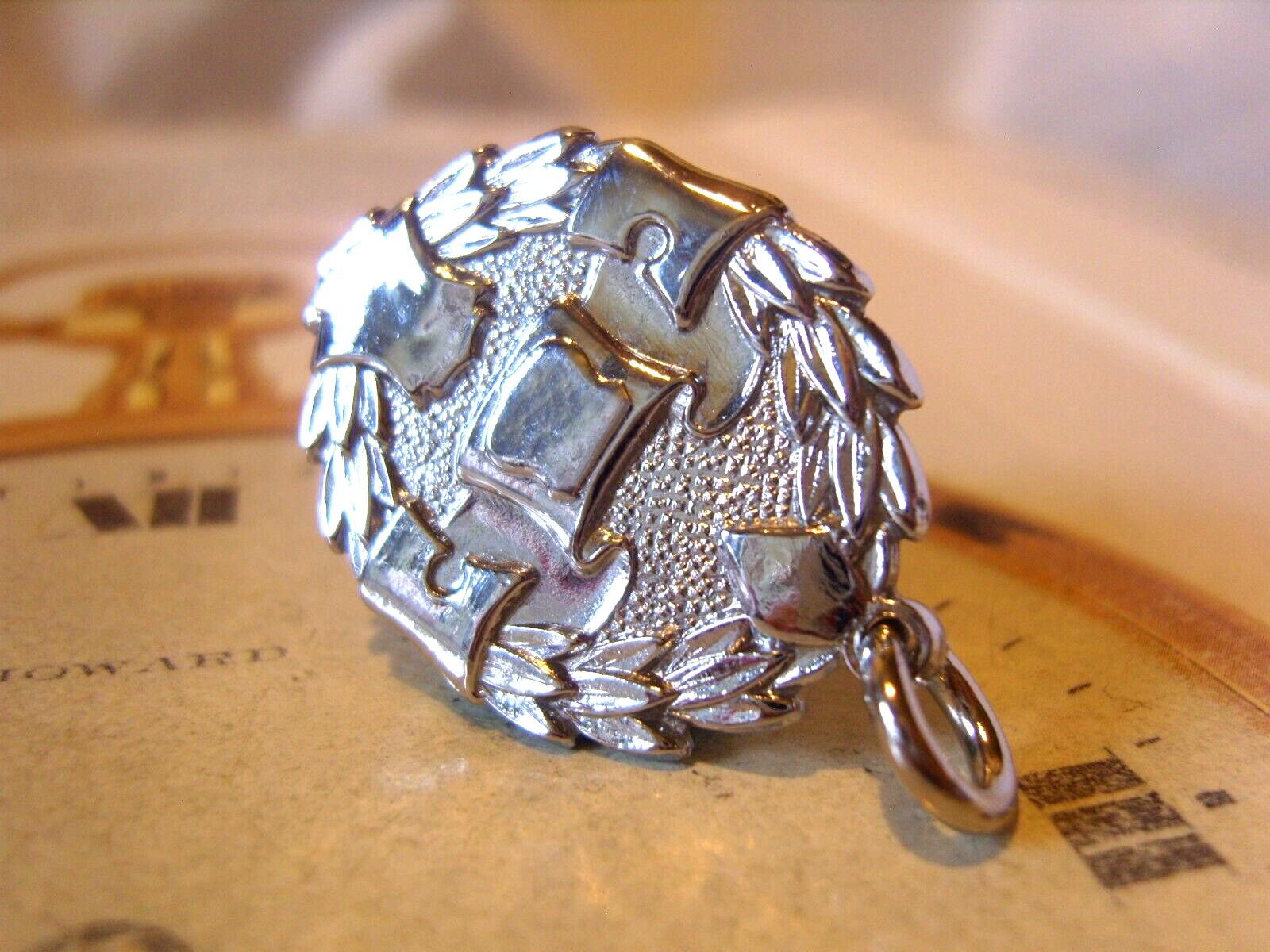 Vintage Fob 1940s Large Ornate Silver Chrome Pocket Watch Chain Shield Fob Nos