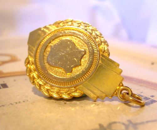 Vintage Fob 1950s Pocket Watch Chain Shield Fob 10 Gold Plated Nos