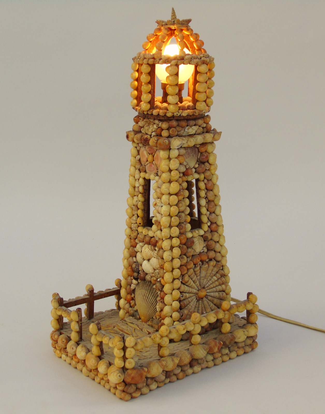 Vintage Folk Art Shell Lamp Lighthouse c.1930 (1 of 1)