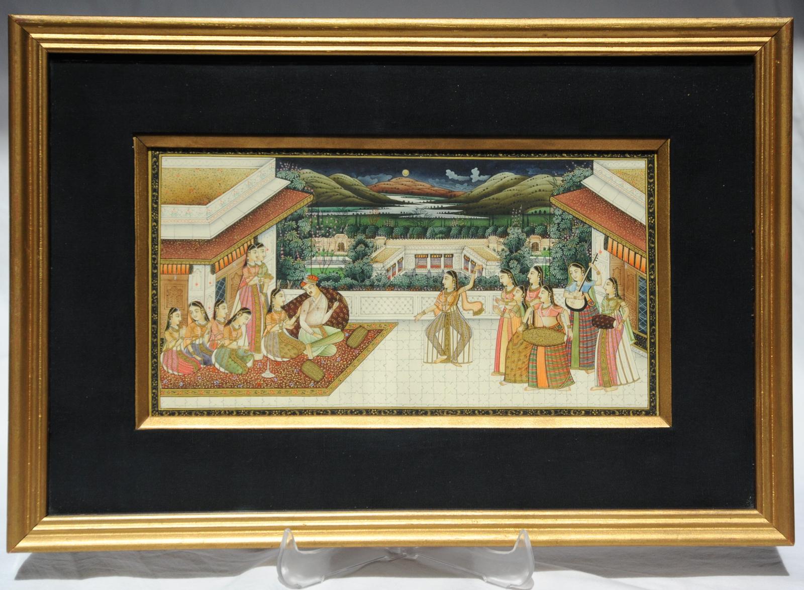 Vintage Framed Indian Mughal-School Court Scene Miniature