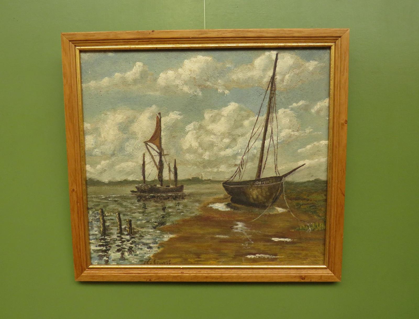 Vintage Framed Oil on Board 'A Thames Barge Going Down The Blackwater'