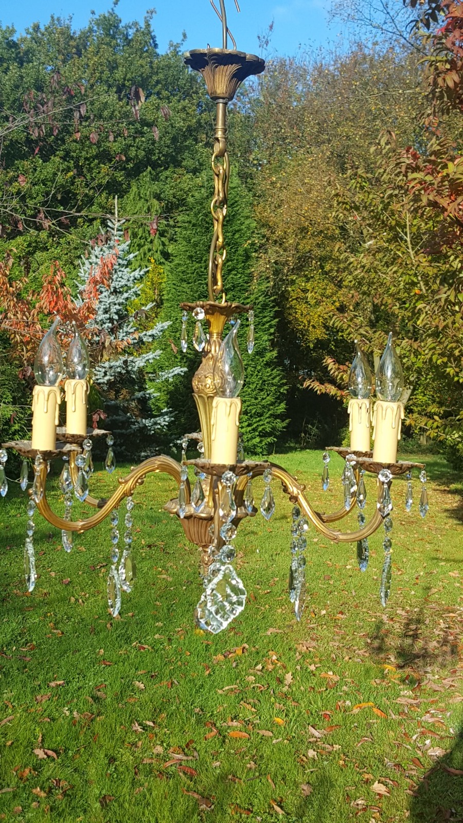 Vintage French 6 Arm Bronze Chandelier with Pretty Drops