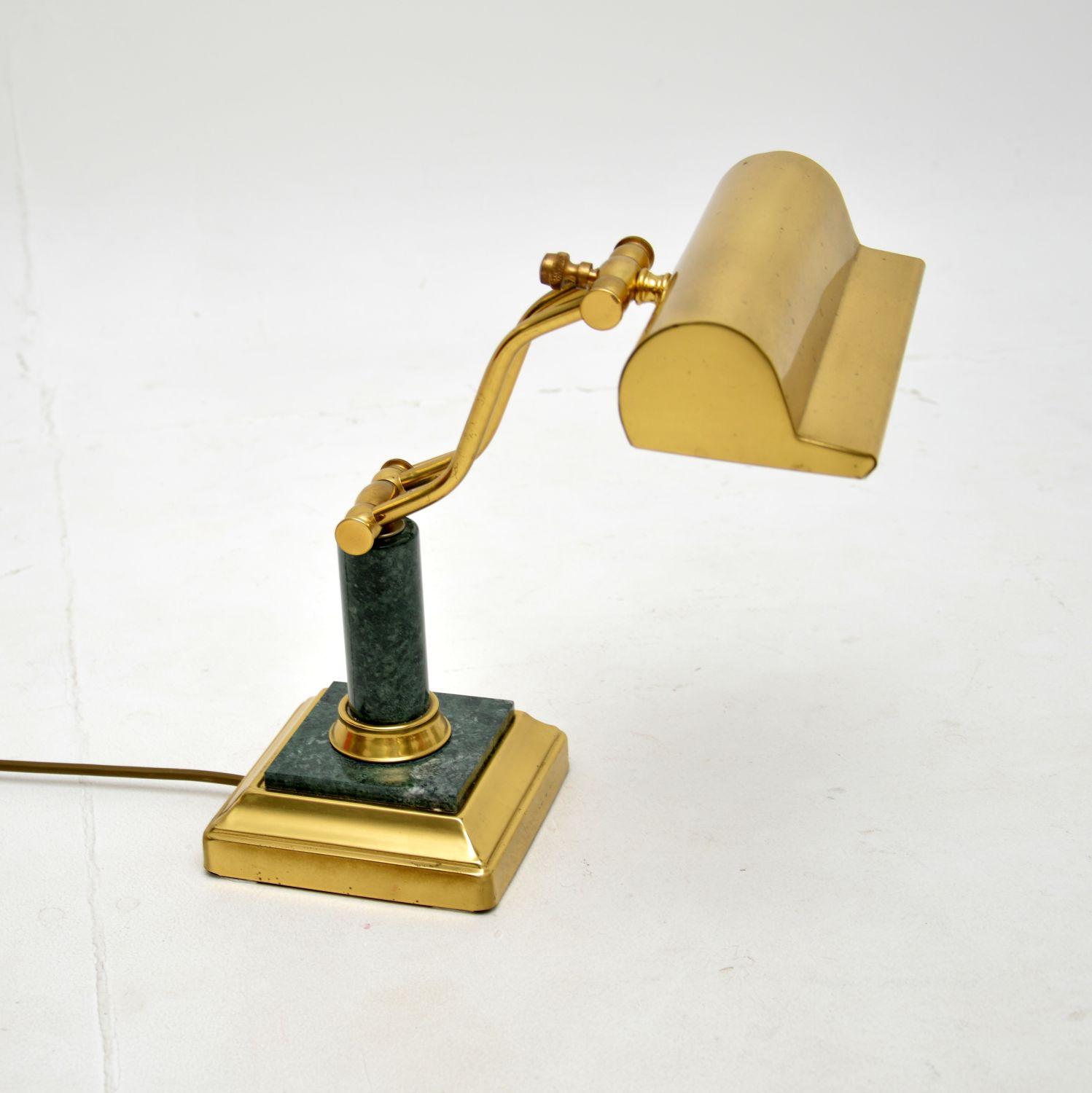 Vintage French Art Deco Desk Lamp in Brass & Marble