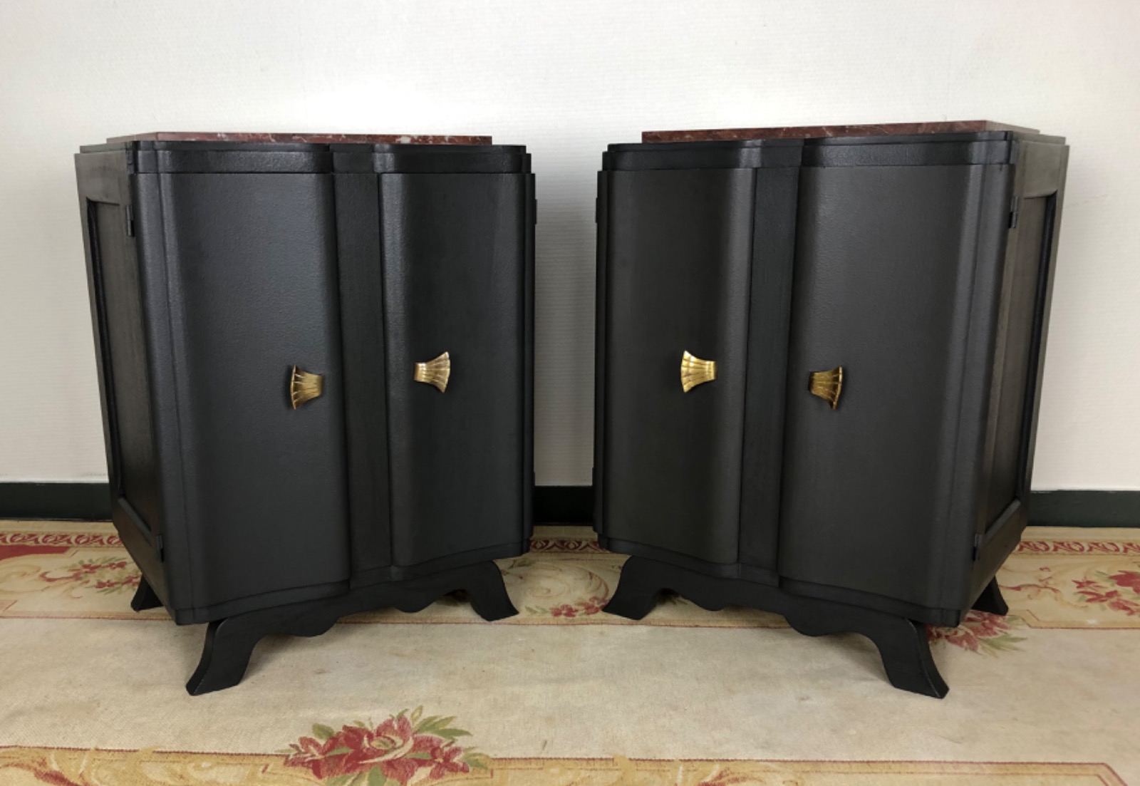 Vintage French Art Deco Pair Bedside Cabinets Painted in Charcoal Grey