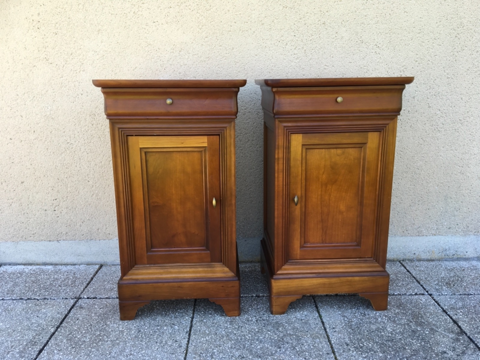 Vintage French Bedside Tables Stylish Cabinets in Cherrywood