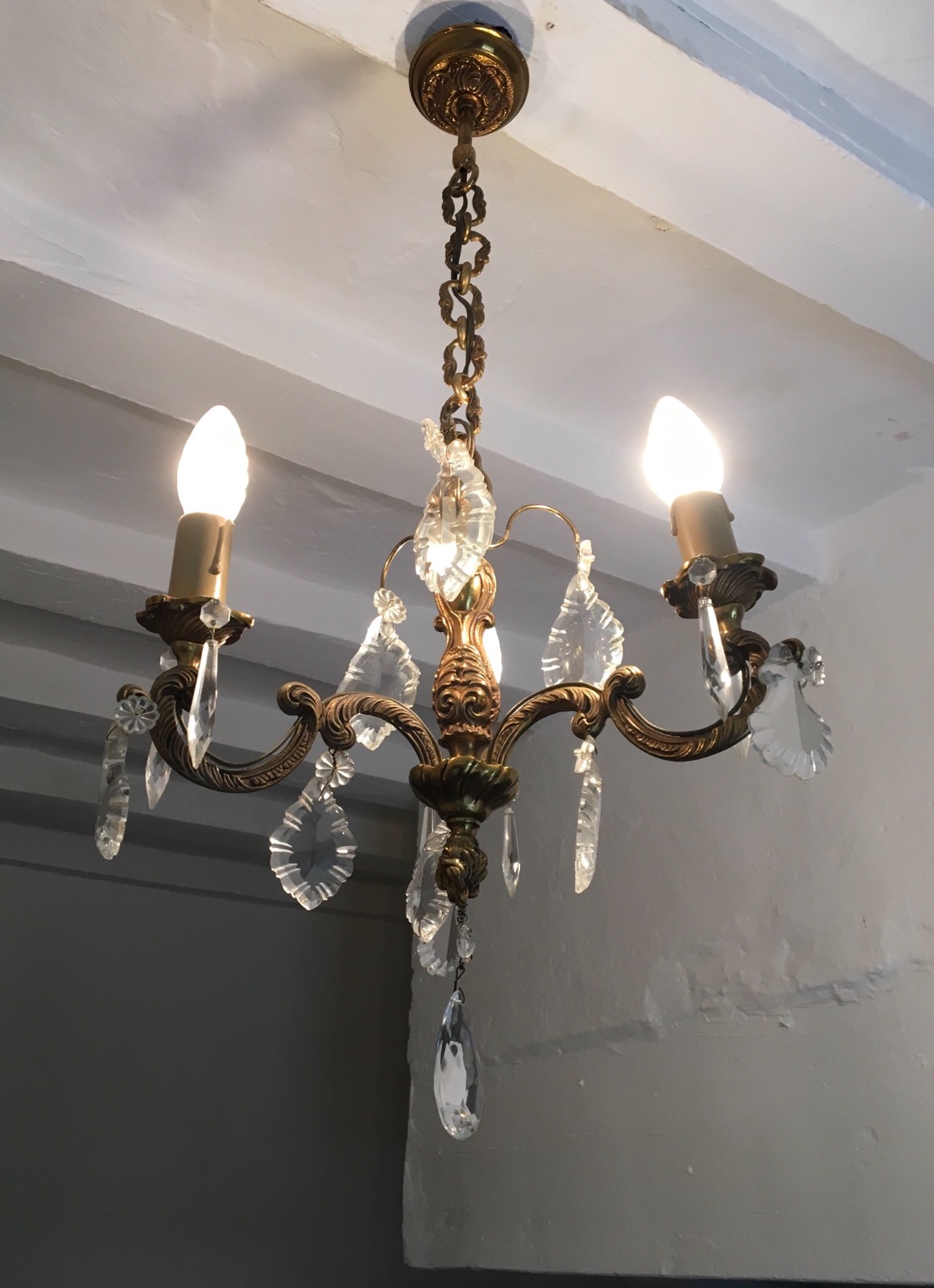 Vintage French Bronze Chandelier 3 Arm Ceiling Light