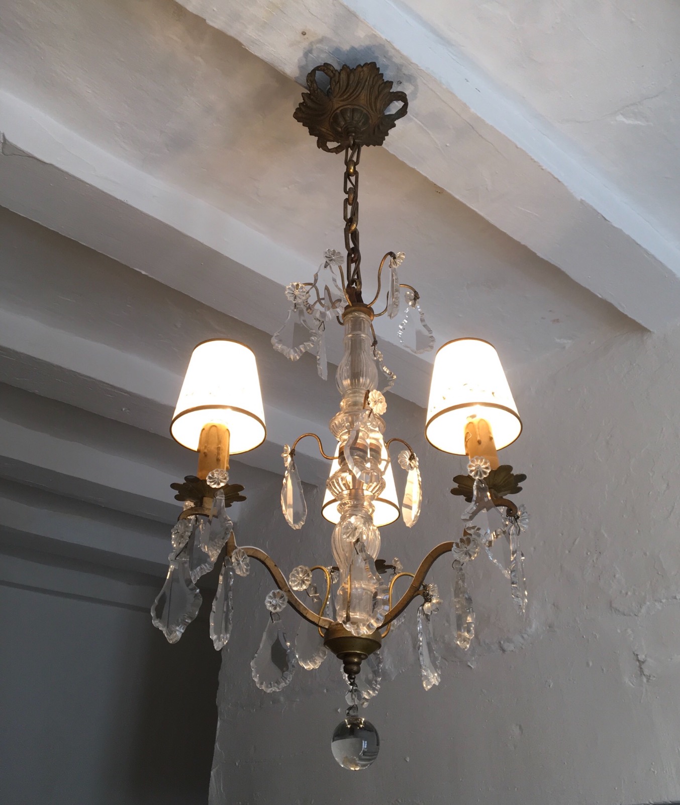 Vintage French Bronze Chandelier Ornate Ceiling Light