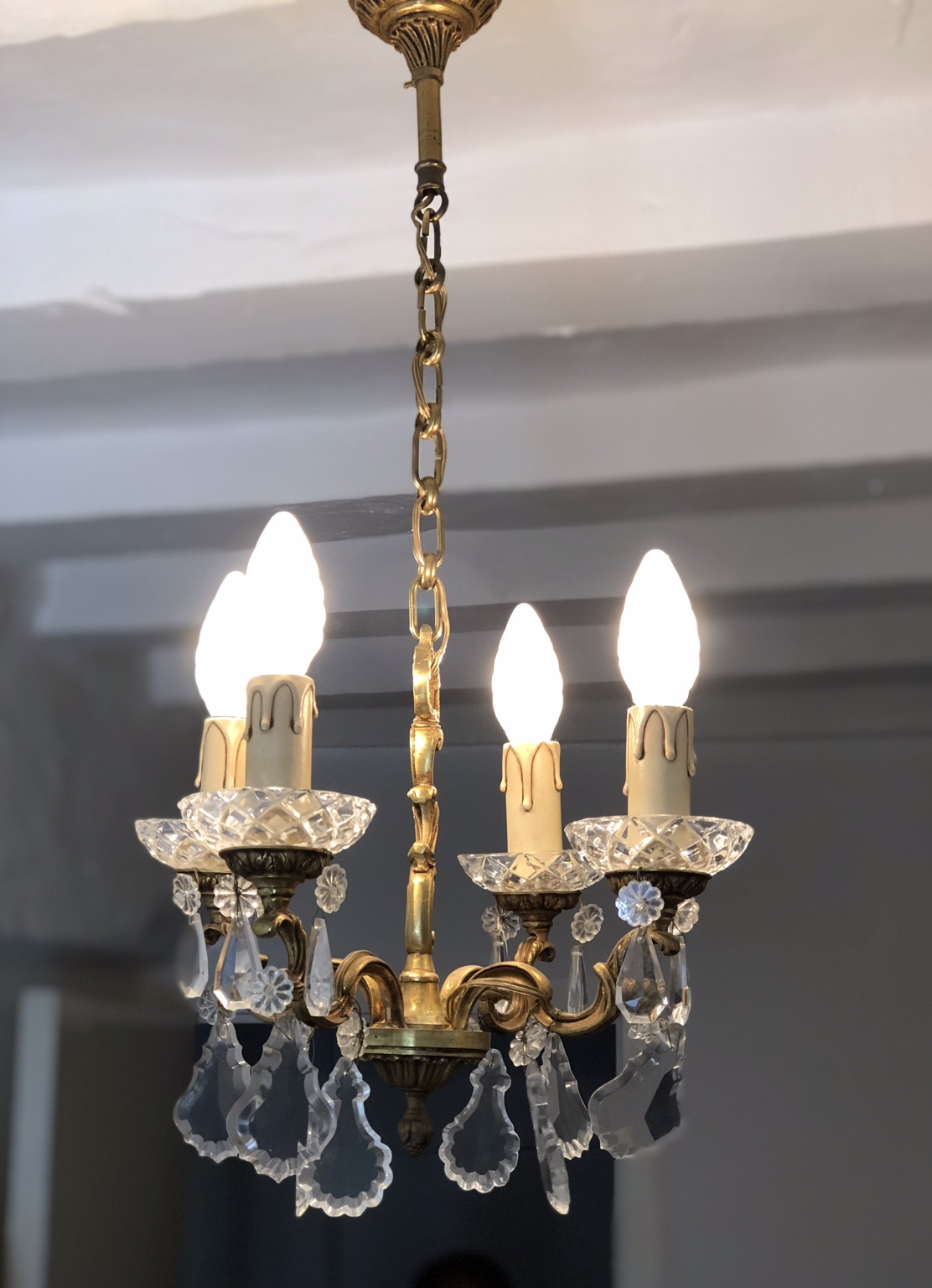 Vintage French Bronze & Crystal Petite Chandelier