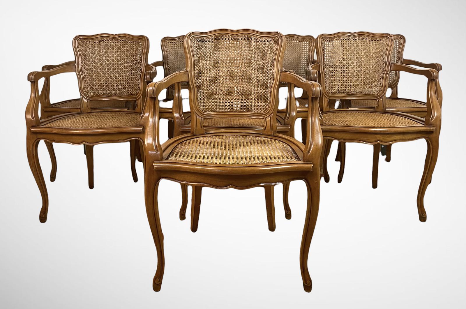 Vintage French Cane Armchairs Set of 8 Bergère Dining Chairs