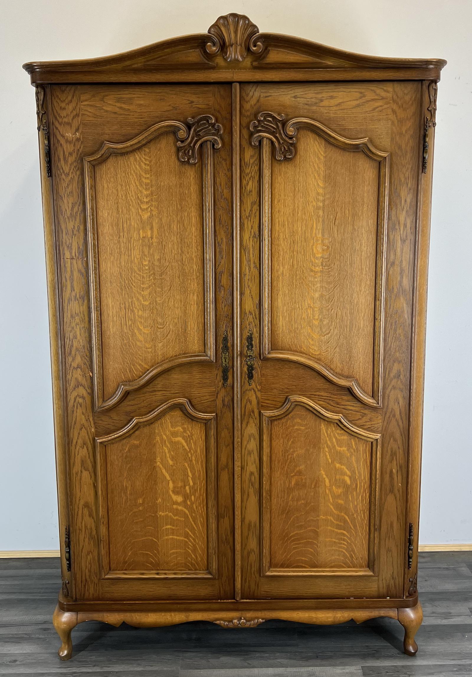 Vintage French Carved 2 Door Armoire Wardrobe