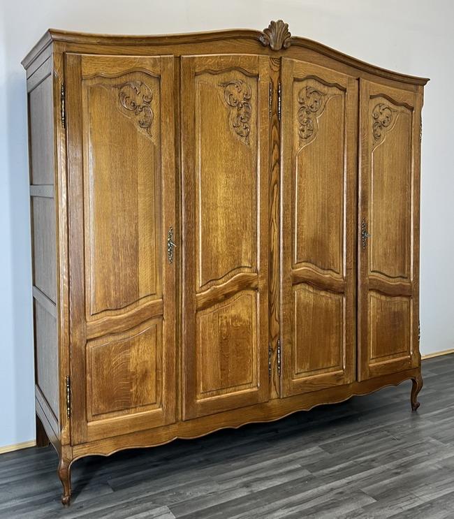 Vintage French Carved 4 Door Armoire Wardrobe